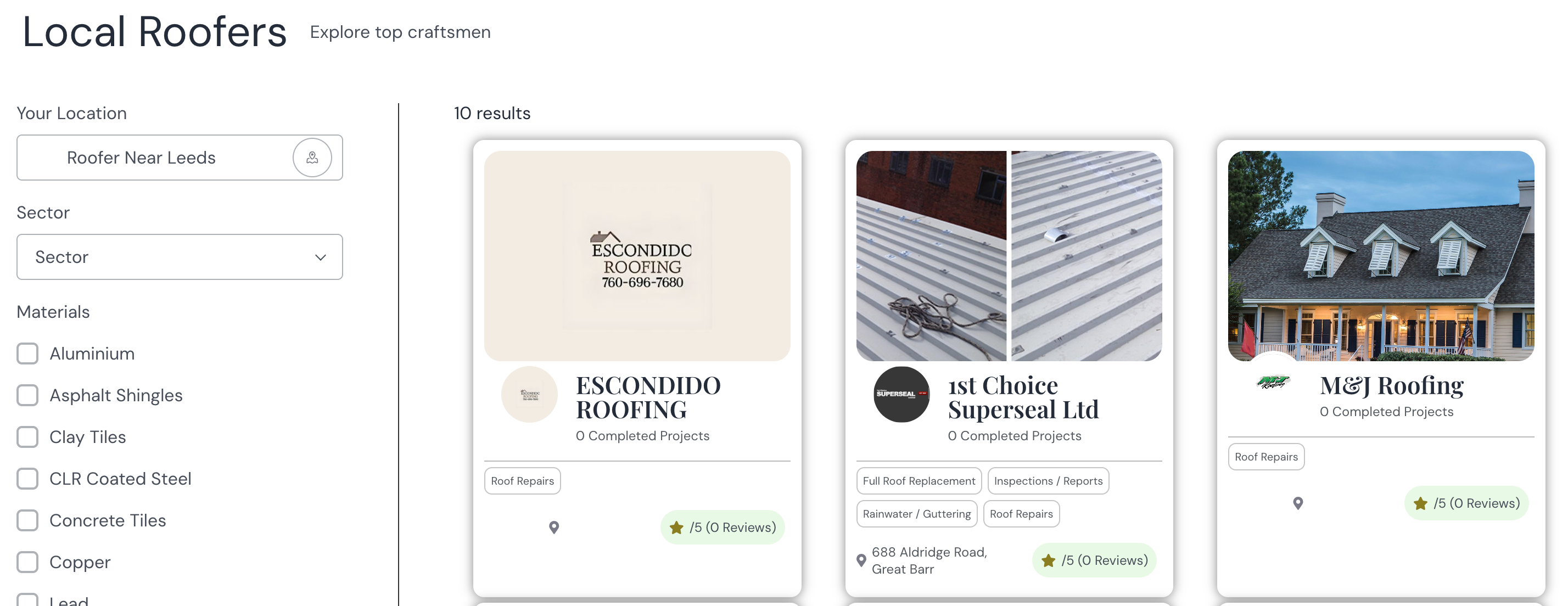 This can include roofing association directories, home service platforms, and contractor verification sites. Examples include NRCA (National Roofing Contractors Association) and trusted contractor platforms like Angi (formerly Angie’s List).